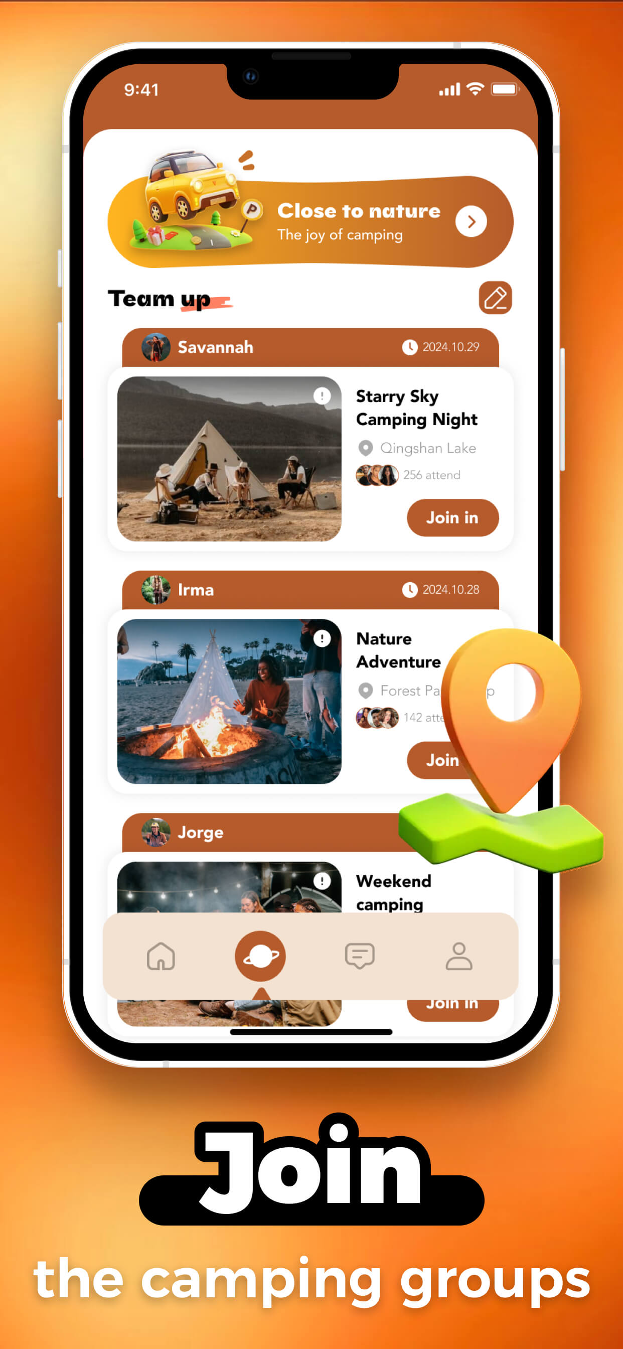 Easily create or join camping groups, making it simple to find like-minded friends for your next getaway.